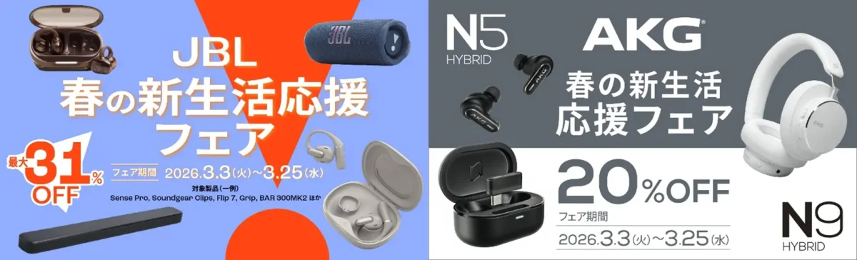 【セールニュース】人気のワイヤレスイヤホンやポータブルスピーカー、サウンドバーが最大31%OFF 豪華ラインナップの「春の新生活応援フェア2026」セールが開催
