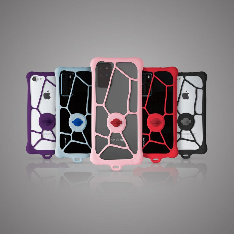 それぞれが多種類のスマートフォンに対応出来るのが特徴で、バンパー部分のシリコンが伸びてスマホにフィットします。衝撃を受けやすい本体の四隅には実用新案取得のコーナーショック吸収を施しました。