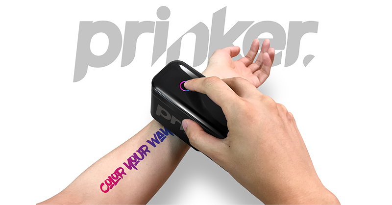 Prinker Korea Inc.は、化粧品素材を使ったインクでカラフルなテンポラリー・タトゥーやイラストを肌に印刷できる家庭用のハンディープリンター『Prinker S』を発売しています。