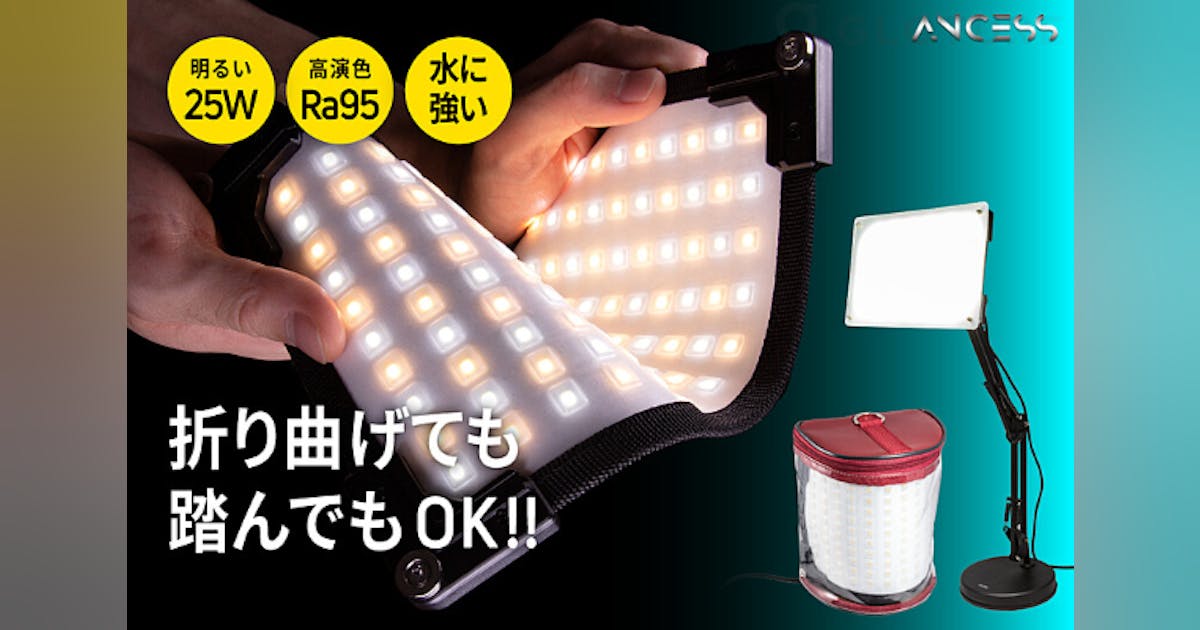 折り曲げても踏んでもOK!災害、撮影に壊れないLEDライト「ANCESS」