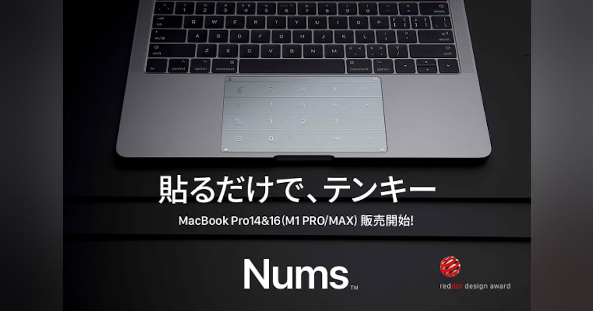 ADZUKI Tradingでは、MacBook/Surfaceのトラックパッドに貼り付けるだけで、テンキー・ランチャー・計算機として機能するマルチタスクなトラックパッドカバー「Nums」のMacBook Pro14&16(M1 PRO/MAX)対応モデルのをクラウドファンディングに出品しています。