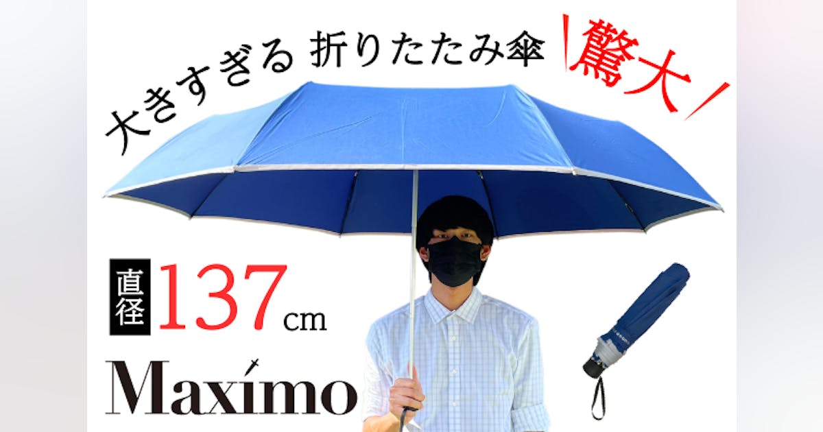 折りたたみ傘なのに開放時直径137cmのキングサイズ【Maximo】大きい人でも足元やリュックが濡れにくくなり、家族や友人もこれ1本でしっかりカバー!でも閉じると意外にコン...