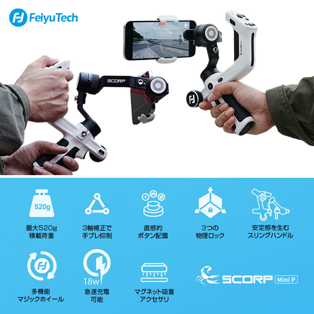 株式会社ロア・インターナショナルは、FeiyuTech(フェイユーテック)より、スリングハンドルやマジックホイールを標準搭載した最上位モデルのスマートフォン用ジンバル「SCORP-Mini P」を発売しています。