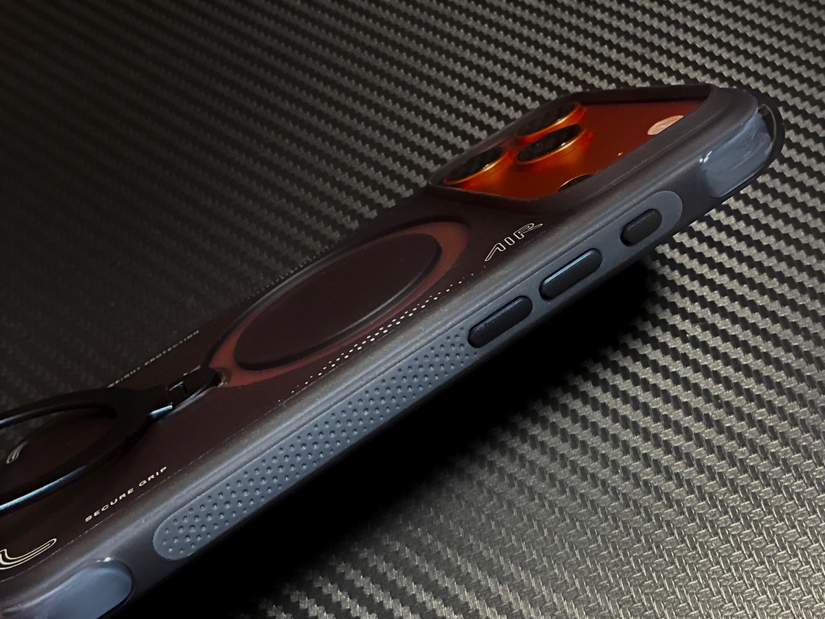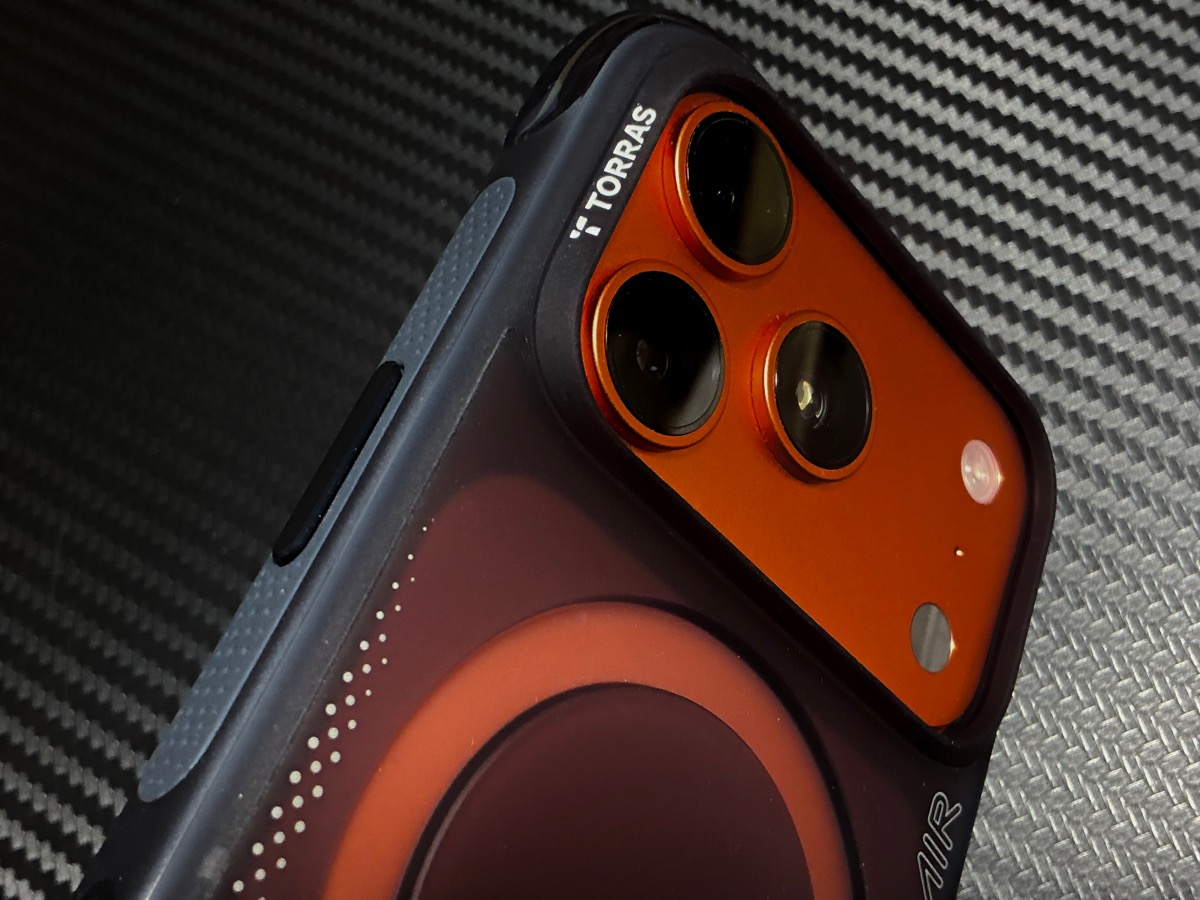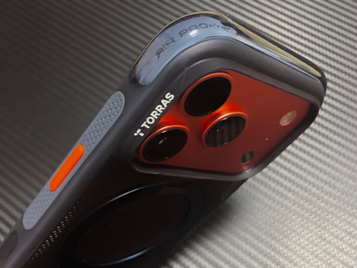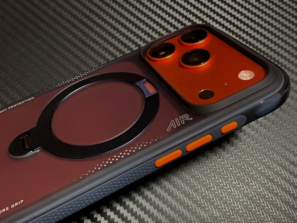 耐衝撃性があり、スクリーン面も縁が高くなっているので、各所の保護性能は高いのですが、iPhone 17 Proシリーズはカメラユニット部分が大型化していることもあり、また、カメラユニットの土台はガラスから熱間鍛造アルミニウムに変更されているので、傷や筐体削れには注意が必要です。