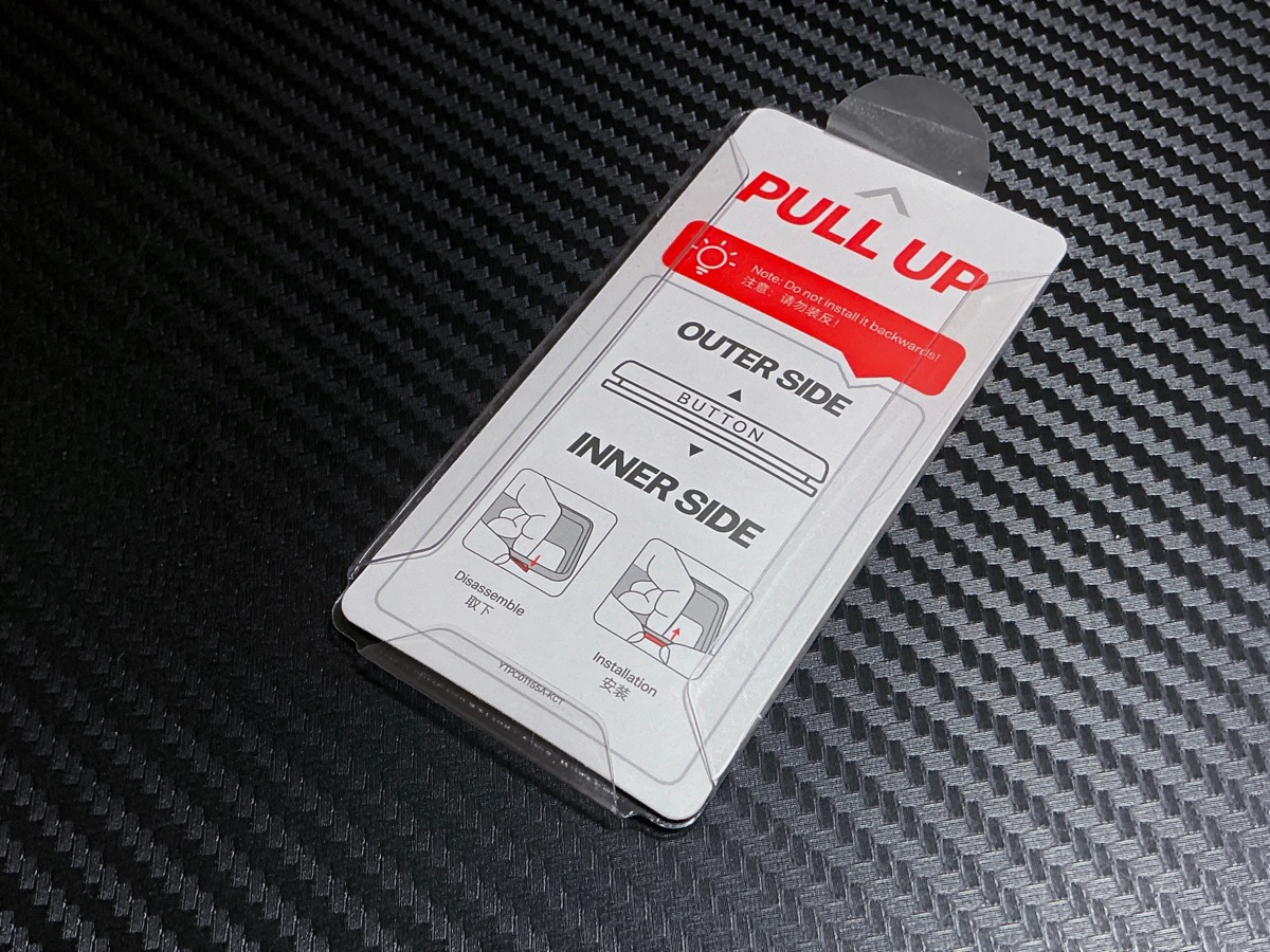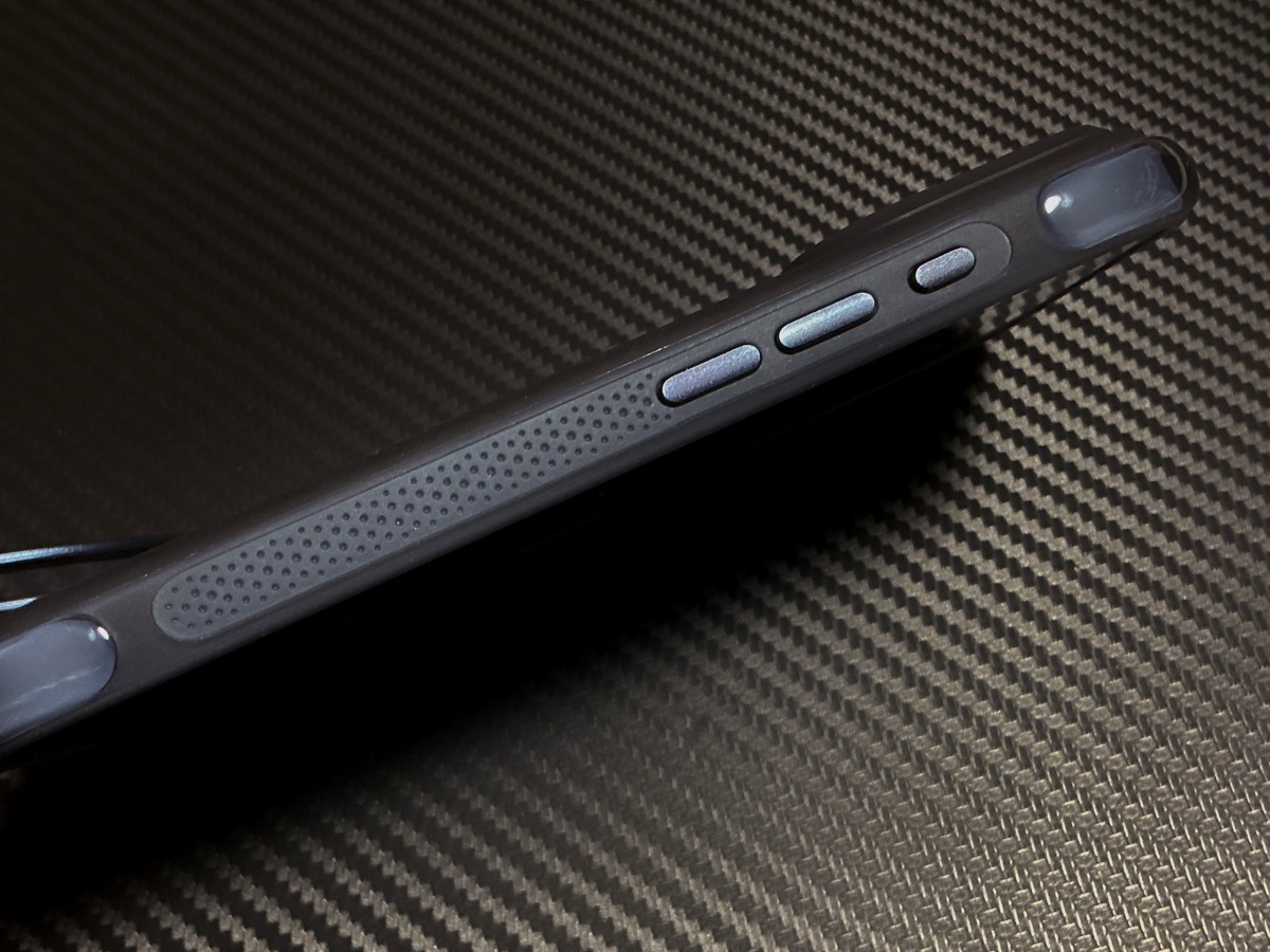 保護ケースの内側より押し出してボタンを取り外して、内側からはめ込むことで交換ができます。ボタンの押し感は非常に良く、保護ケースをつけたことで操作しにくくなることはありません。