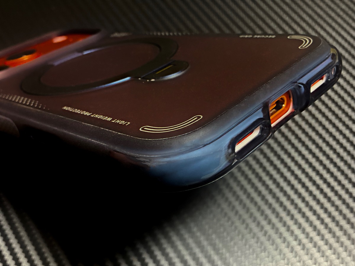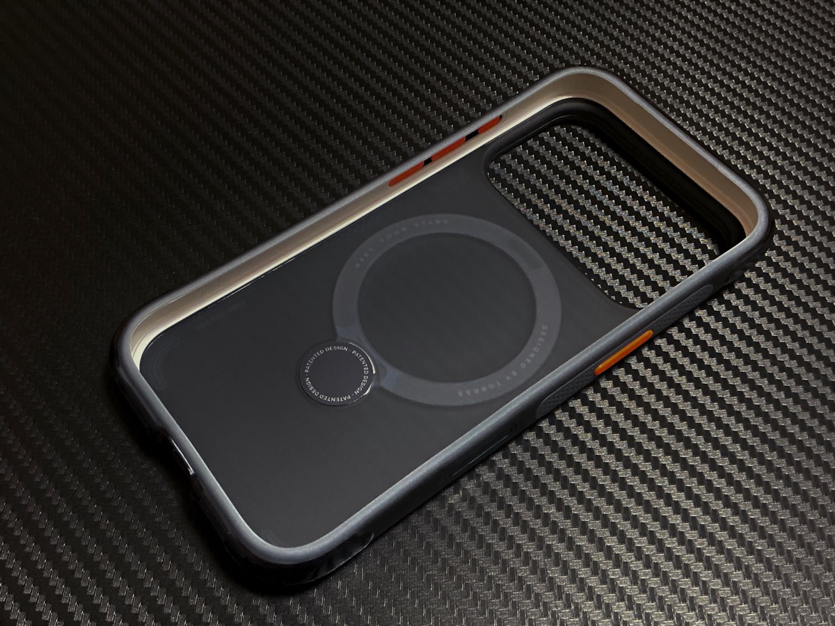 背面のMagSafe部分はポリカーボネート素材を採用しており、側面や上部はTPUを採用しているので、保護ケースのつけ外しも手軽に行えます。