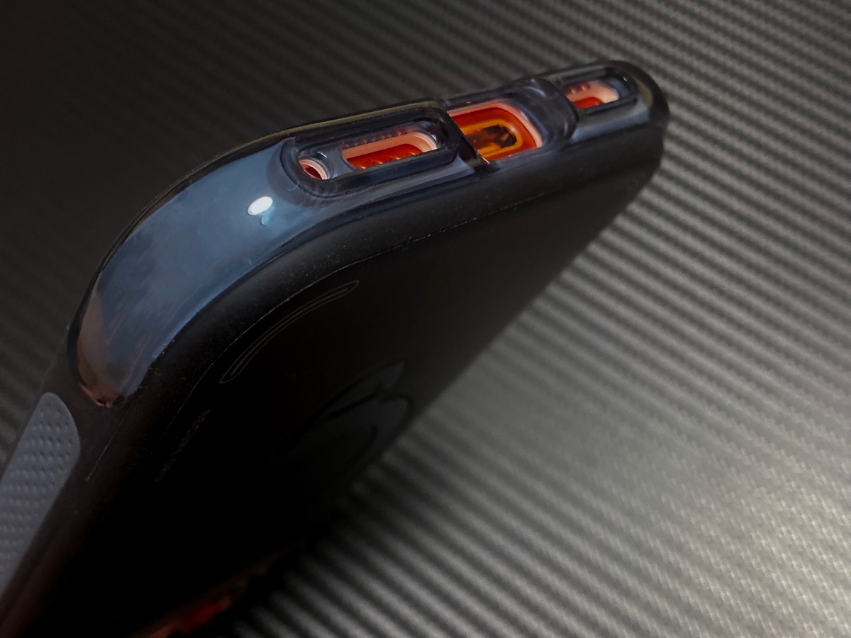 側面部分にTPU素材を採用しているところもあり、四隅は白く濁った見え方をしていますが、この部分がエアクッションとなっています。エアバック部分は、柔軟性がありTORRASの独自の耐衝撃性を搭載しています。