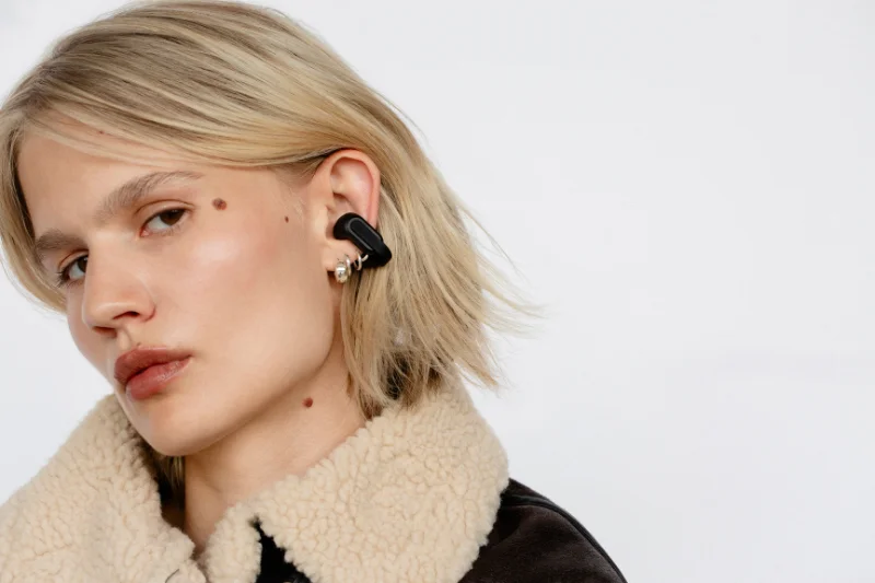 B3は耳の側面にクリップするイヤーカフ型のデザインで、耳の穴をふさがずに装着。音楽を聴きながら周囲の音にも自然に気づくことができ、移動中や仕事中、スポーツなどあらゆるシーンでストレスなく使用できます。