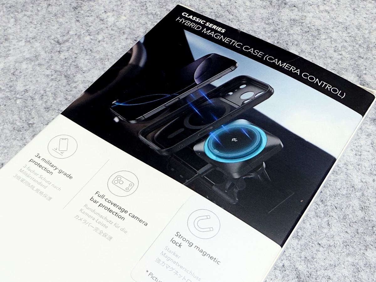 ESR Classic Hybrid Magnetic Case (Camera Control)は、クリアケースで各種ボタンを保護しながらも、耐衝撃性とMagSafeに対応したiPhoneケースです。