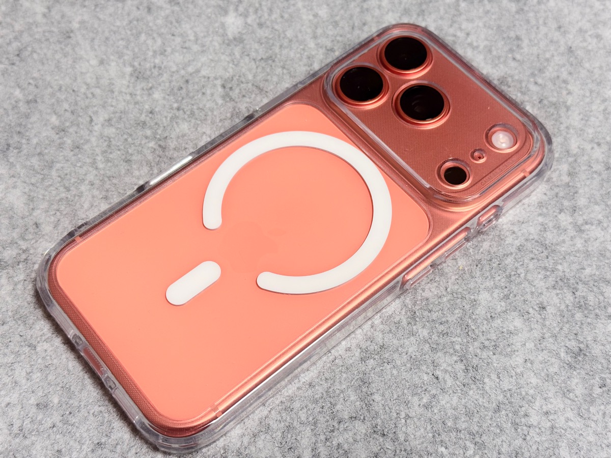 iPhone 17 Proの場合、Appleロゴ部分は本体の中央部分ではなく、カメラユニットを除いたスペースの中央にデザインされているためAppleロゴが位置する場所はマグネットのパーツが干渉しないようにデザインされています。