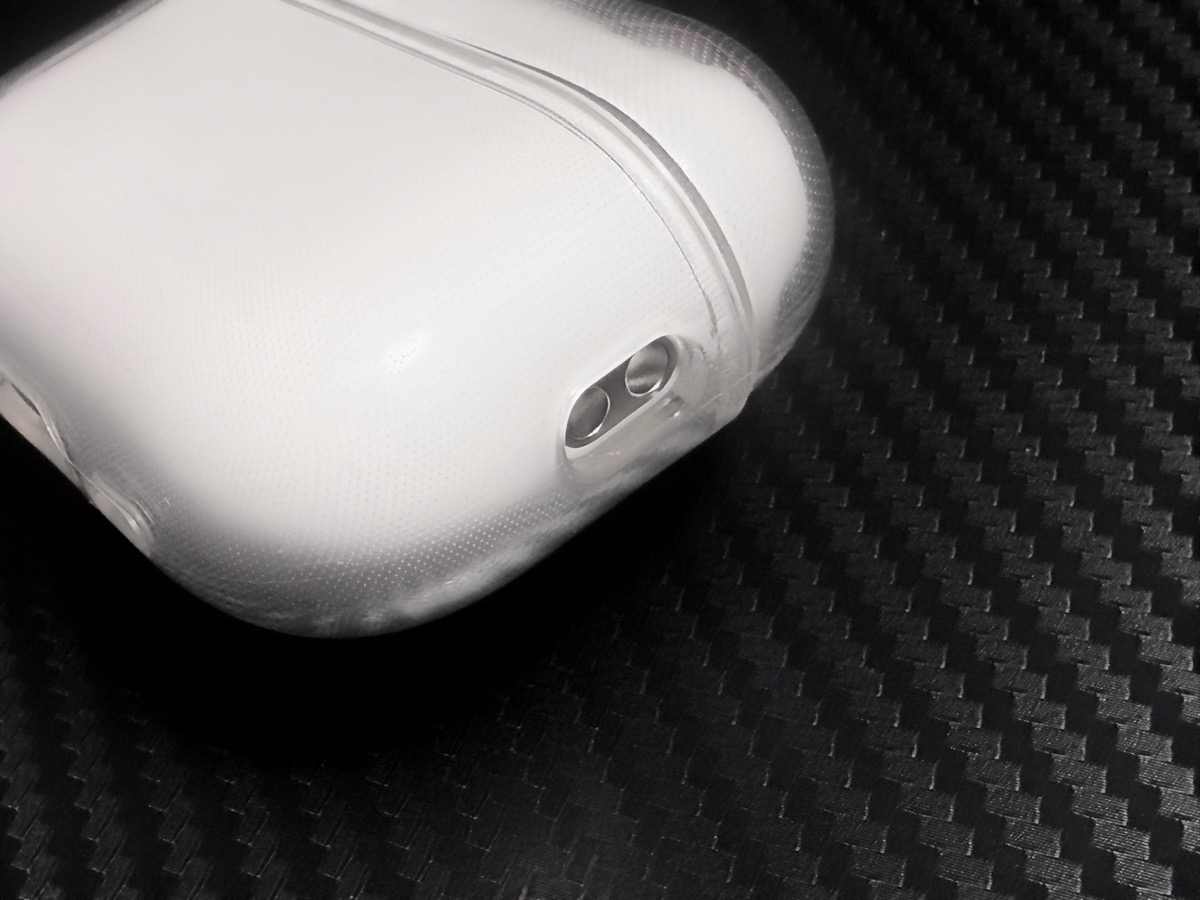 TPU素材なので、AirPods本体に張り付くような装着感となり、黄ばみ防止加工もされているので、まるでケースをつけていないような見た目となります。
