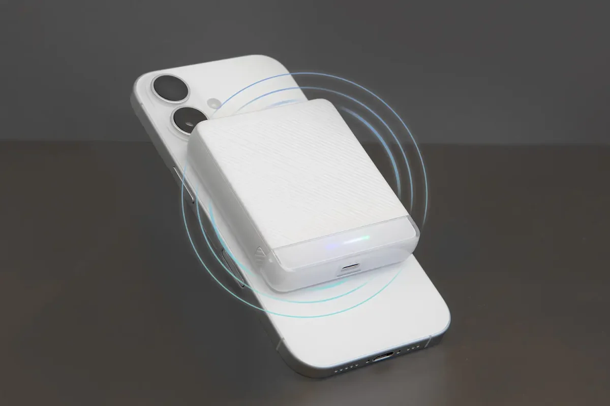 手のひらサイズのコンパクトボディに5000mAhの容量とPD20W出力、マグネット式ワイヤレス充電を搭載。デザイン性と機能性を兼ね備えた、日常使いに最適なモバイルバッテリーです。