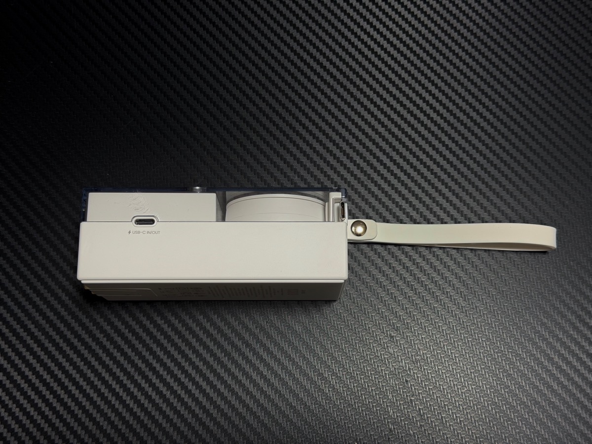 円形になっている部分が内蔵USB-Cケーブルの巻き取りリールとなっており、その他の部分は内臓バッテリとコンセントプラグの収納となっています。