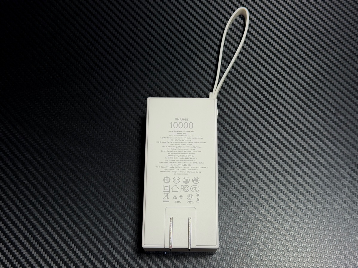 モバイル充電器として、コンセントと10000mAhのモバイルバッテリーの機能を持った充電器で、巻取り式USB-Cケーブルを搭載しているので使い勝手が良く、筐体デザインが優れている点も好感です。