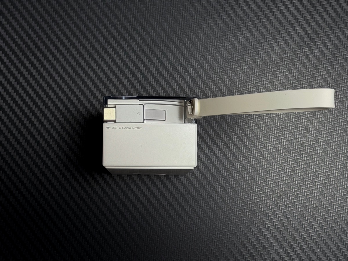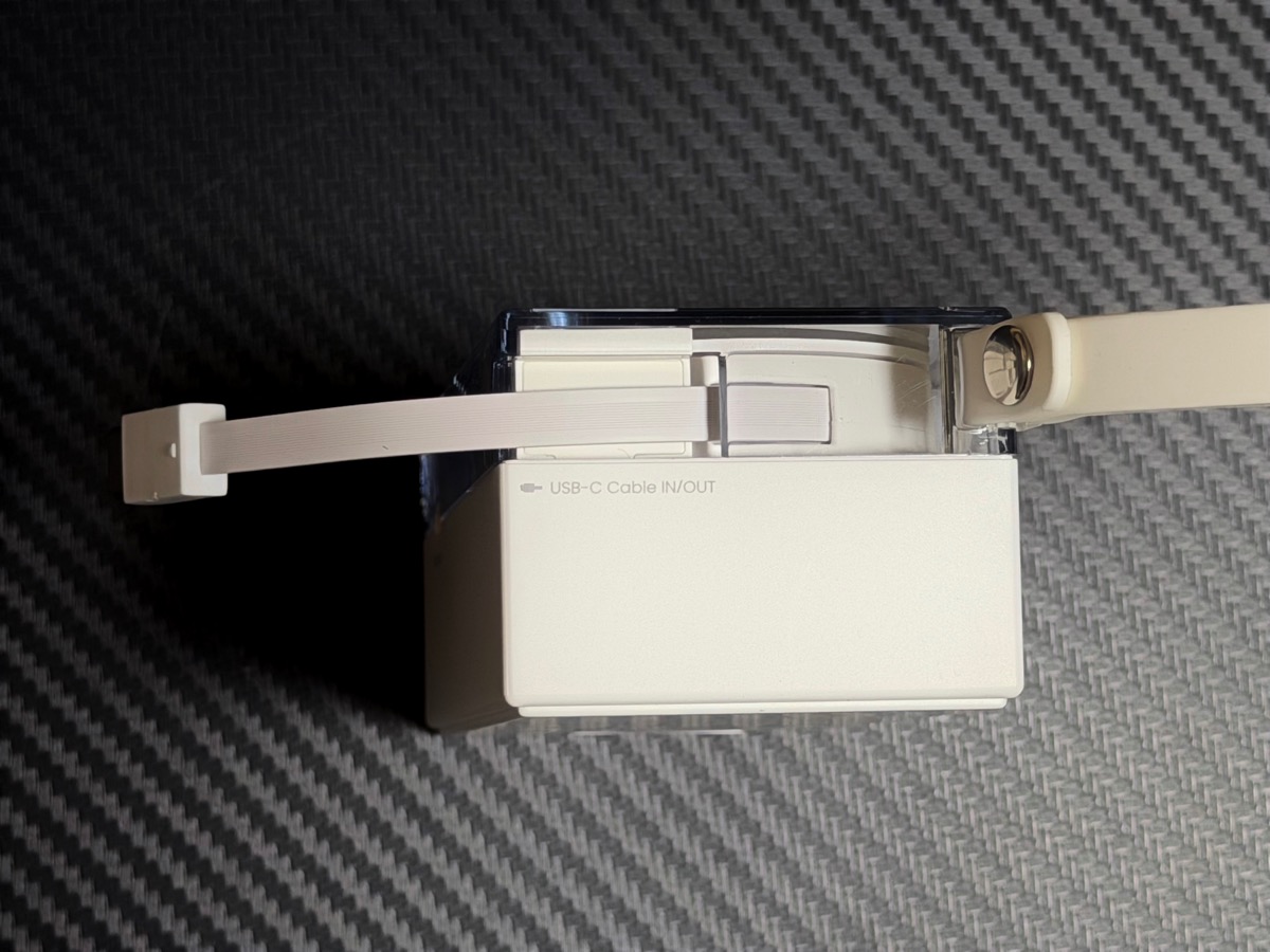ケーブル自体は、最大まで引き伸ばすと、巻取りが自動的に行われます。キャニスター型掃除機のコード巻取りと考えるとわかりやすいです。USB-Cコネクタは充電器本体の邪魔にならない場所に位置しており、使うときも取り出しやすい位置にあります。