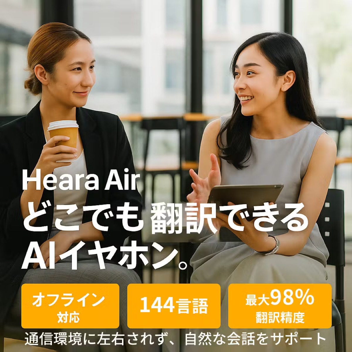 株式会社45.rは、AI翻訳イヤホン「Heara Air(ヒアラ・エアー)」をクラウドファンディングに出品しています。