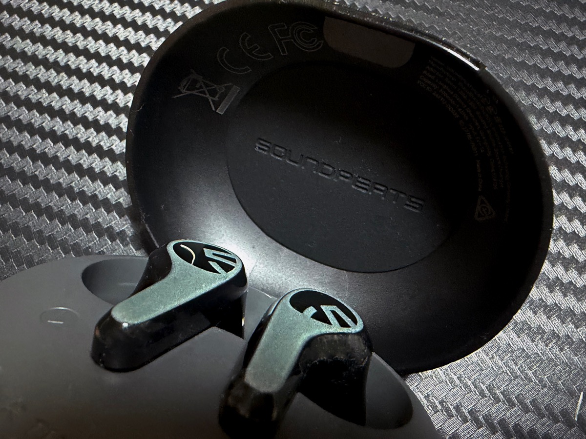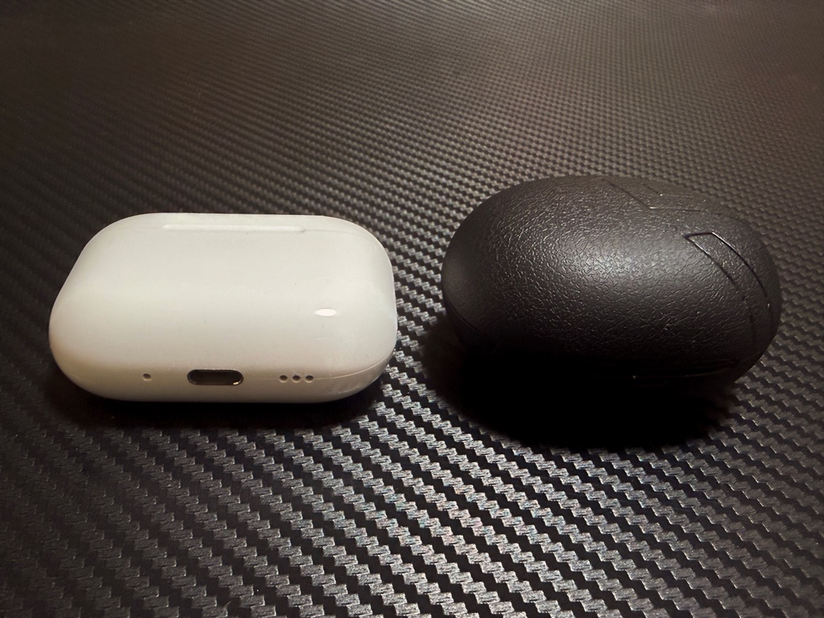 充電ケースはプラスティックで非常に軽量でもあり、SOUNDPEATS製品には珍しく、表面にシボ加工がされており、手に持ちやすいデザインとなっています。