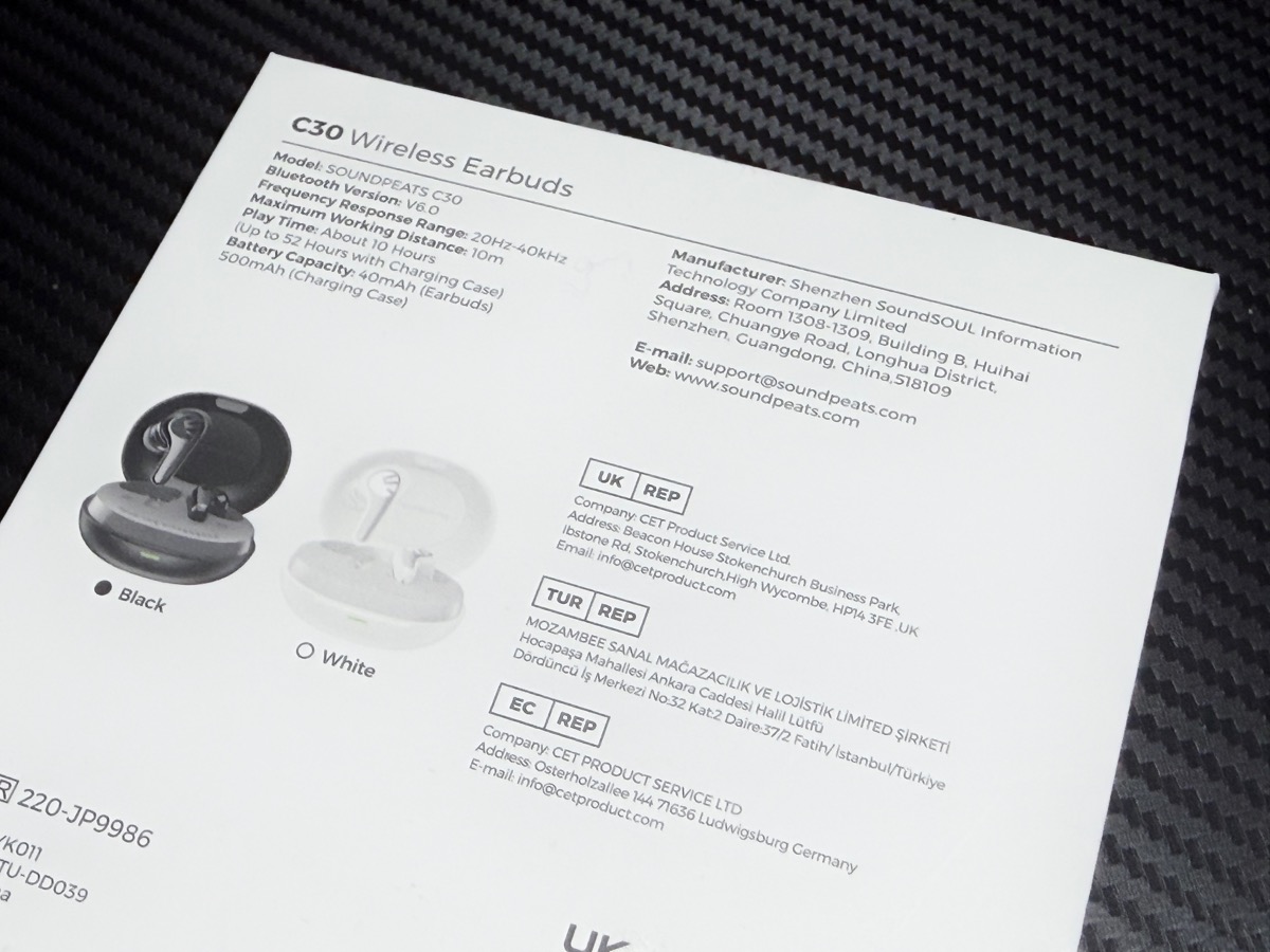 SOUNDPEATS C30は、価格をさらに追求して、5,000円を切る価格で購入できるコストパフォーマンスの高いイヤフォンです。安価ながらもノイズキャンセリングやハイレゾ対応もしており、イヤフォンの機能が高く、初めての完全ワイヤレスイヤフォンとしてもかなりハイスペックな印象があります。