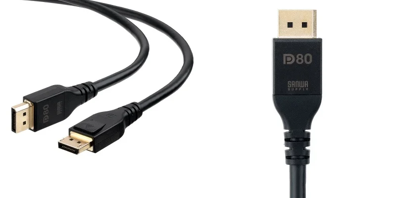 サンワサプライ株式会社は、超高速80Gbps伝送に対応し、16K/120Hzや8K/120Hzの高解像度映像の出力が可能でゲームや映像編集、映画鑑賞などに最適な次世代DisplayPort規格ver.2.1のDP80正規認証を取得したDisplayPortケーブル「500-KC050-15(1.5m)」、「500-KC050-2(2m)を発売しています。