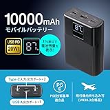 - USB Power Delivery(USB PD)規格による最大20Wの出力に対応し、対応スマートフォンやタブレットなどへ急速充電ができる容量10000mAhのモバイルバッテリーです。