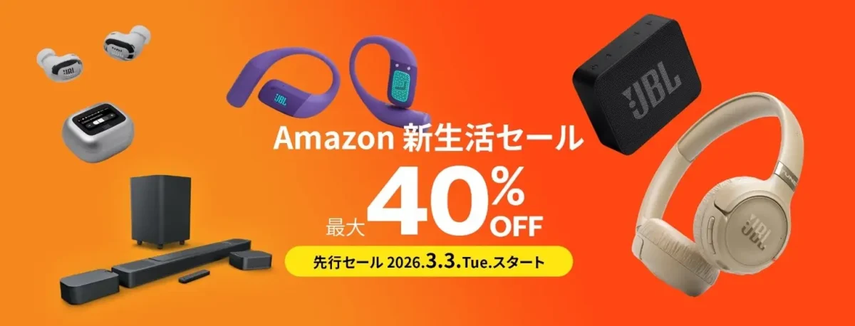 ハーマンインターナショナル株式会社は、JBLにおいて、人気のワイヤレスイヤホンやポータブルスピーカー、サウンドバーをはじめとする公式限定モデルを、最大40%オフセールを開催しています。