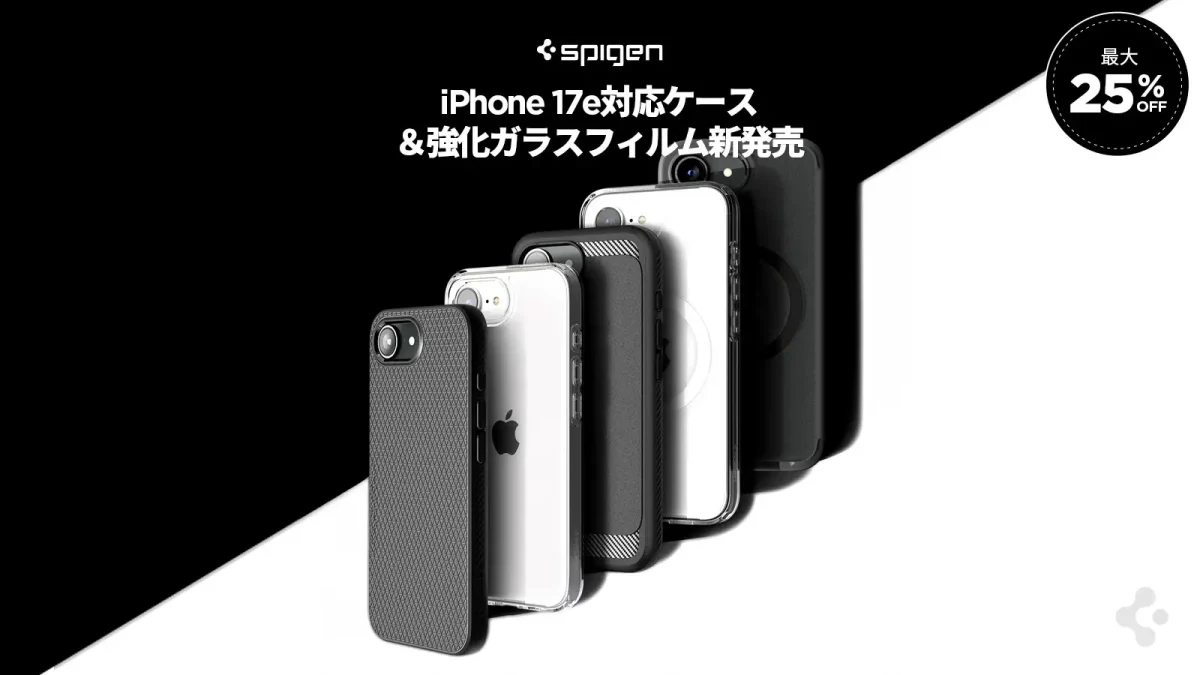 Spigenは、iPhone 17eの発売に合わせて、耐衝撃ケース26種と高透明の強化ガラスフィルム3種を発売しています。