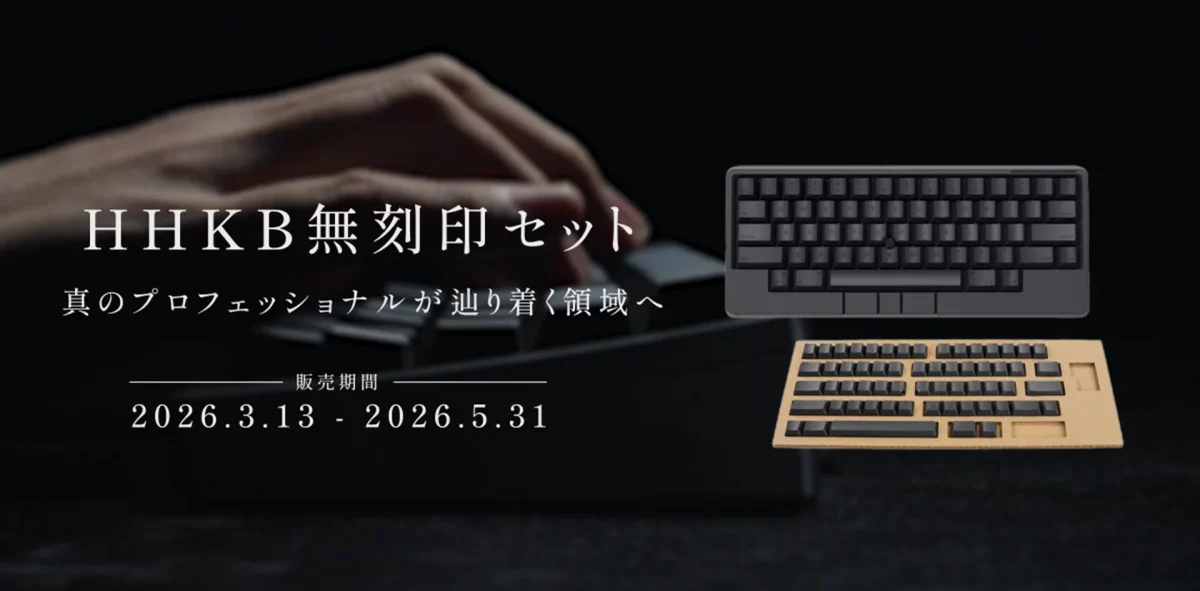 Happy Hacking Keyboardシリーズは、「HHKB Studio」、「HHKB Professional HYBRID Type-S」、「HHKB Professional Classic Type-S」と「無刻印キートップ」を特別セット価格で発売しています。
