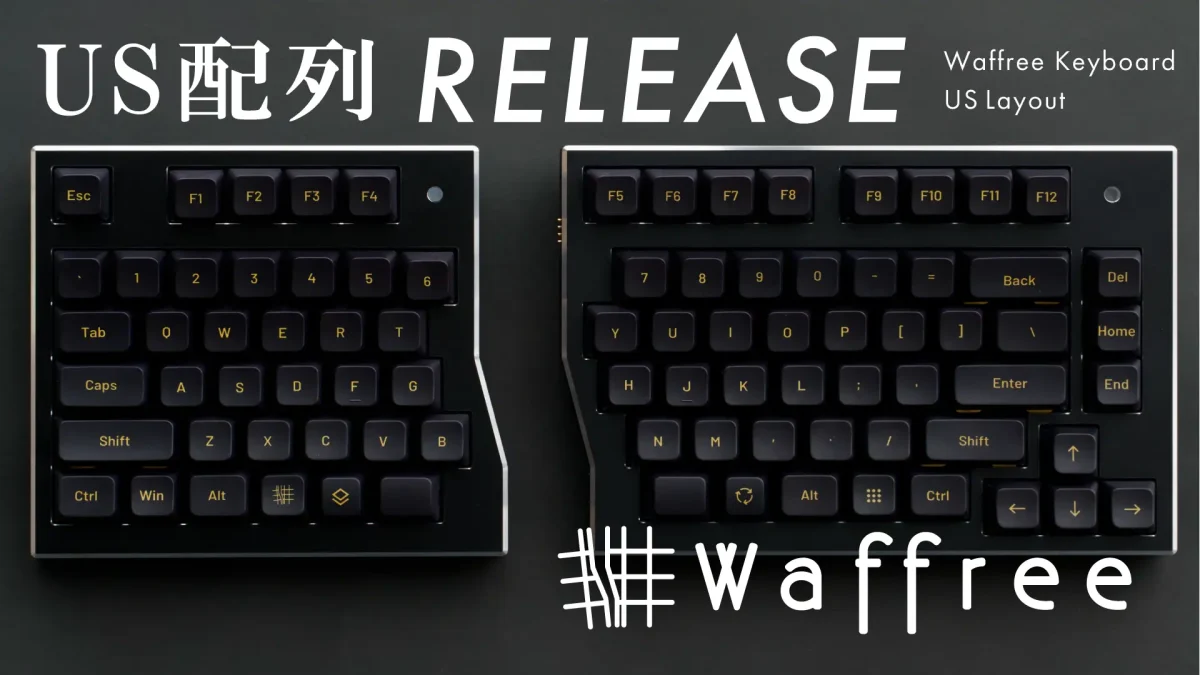 株式会社金沢エンジニアリングシステムズは、完全ワイヤレス×分割式設計のキーボード「Waffree」シリーズにおいて、US配列モデル「Waffree US」を発売しています。